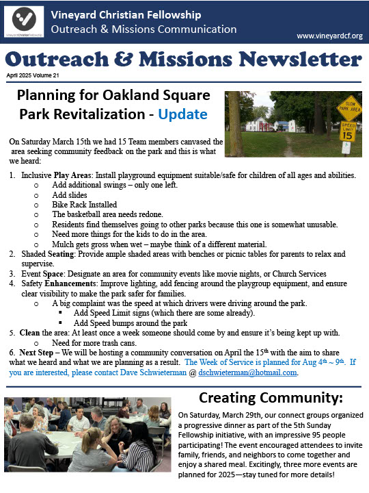 Come along on a journey to bring Jesus to people inside and outside our four walls! Here you will find newsletters, strategic planning, and how to get involved.